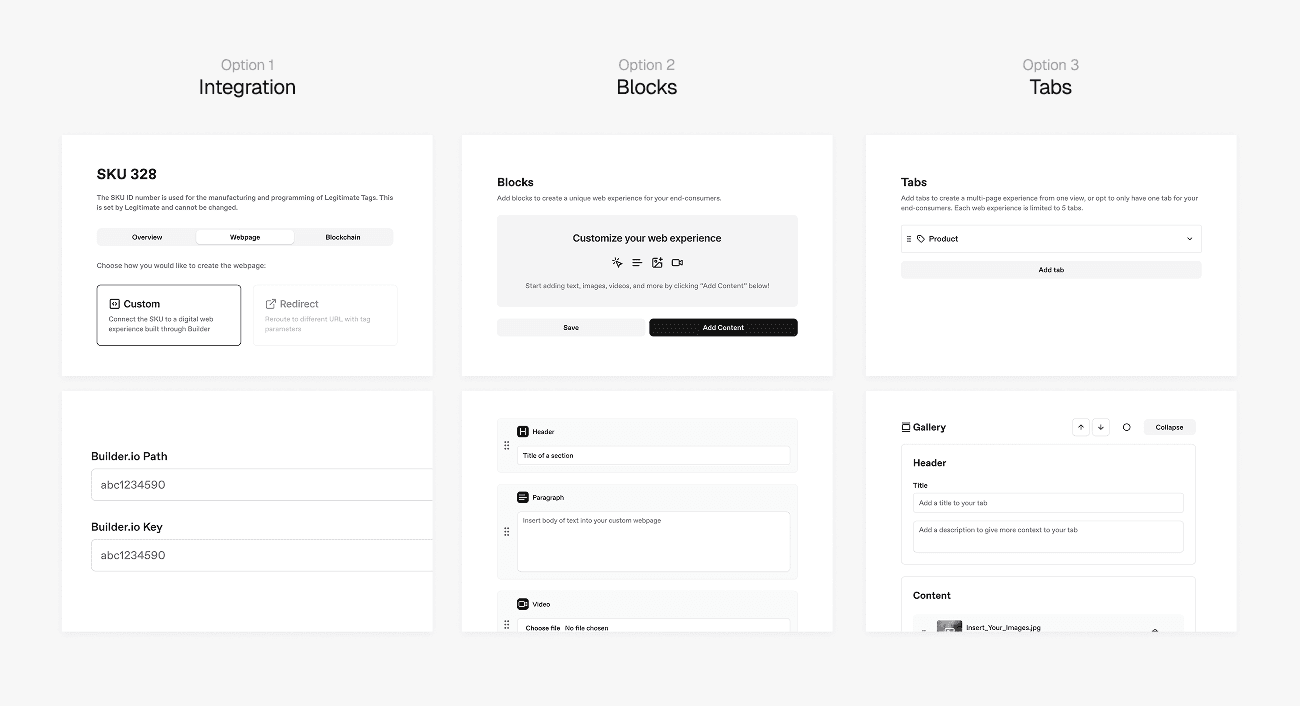 The first approach of integrating with a CMS was already proving to be unsustainable due to operational overhead and friction, therefore I narrowed in on “Blocks” and “Tabs”. Through these design explorations, I worked with our engineers to determine which solution would work best within our constraints.